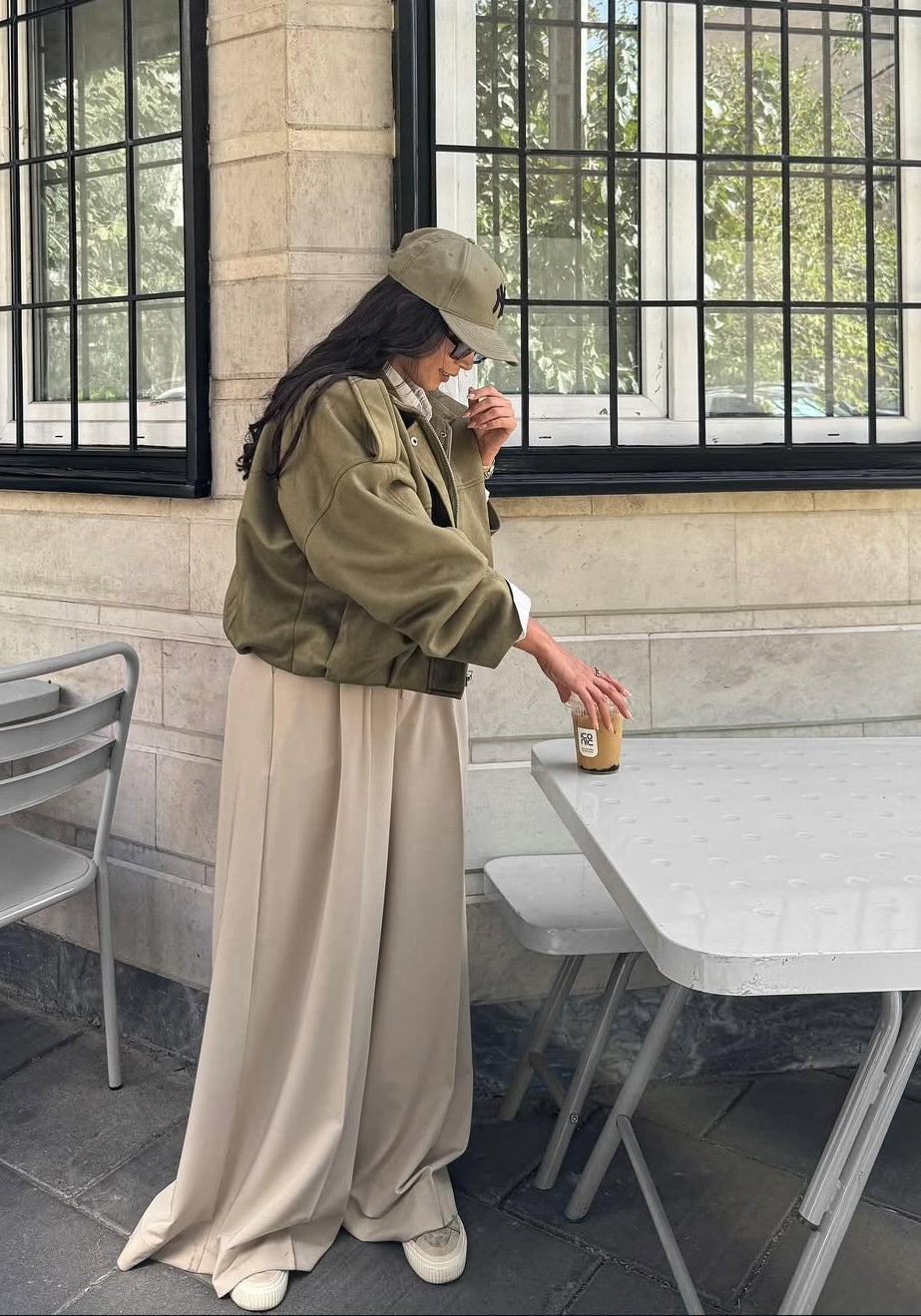 Stay effortlessly stylish with this oversized olive suede jacket. Featuring a soft suede texture, relaxed fit, and a chic collar detail, it’s the perfect layering piece for a clean, modern look. Ideal for everyday wear in cooler seasons.